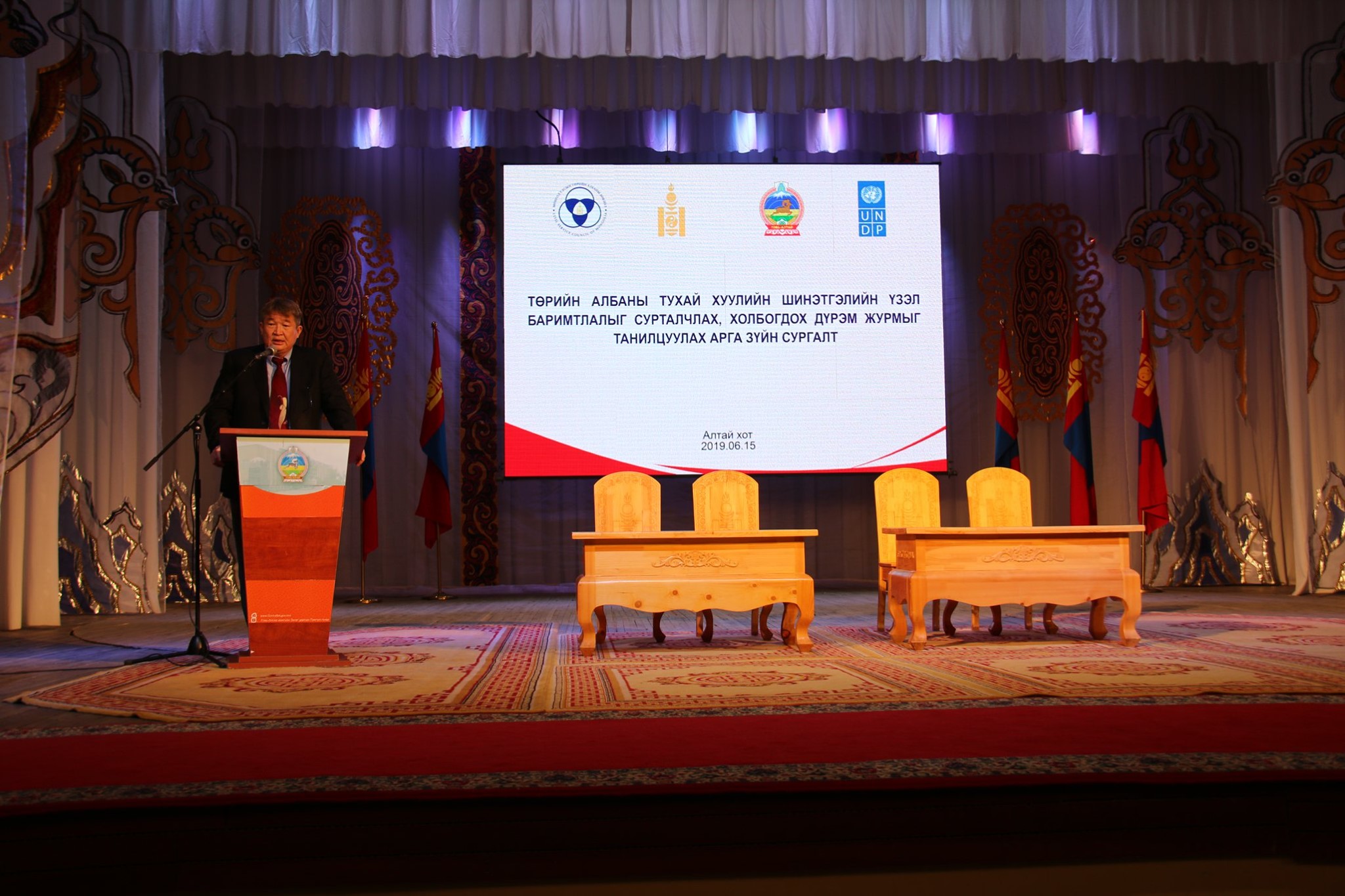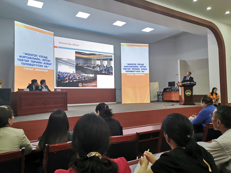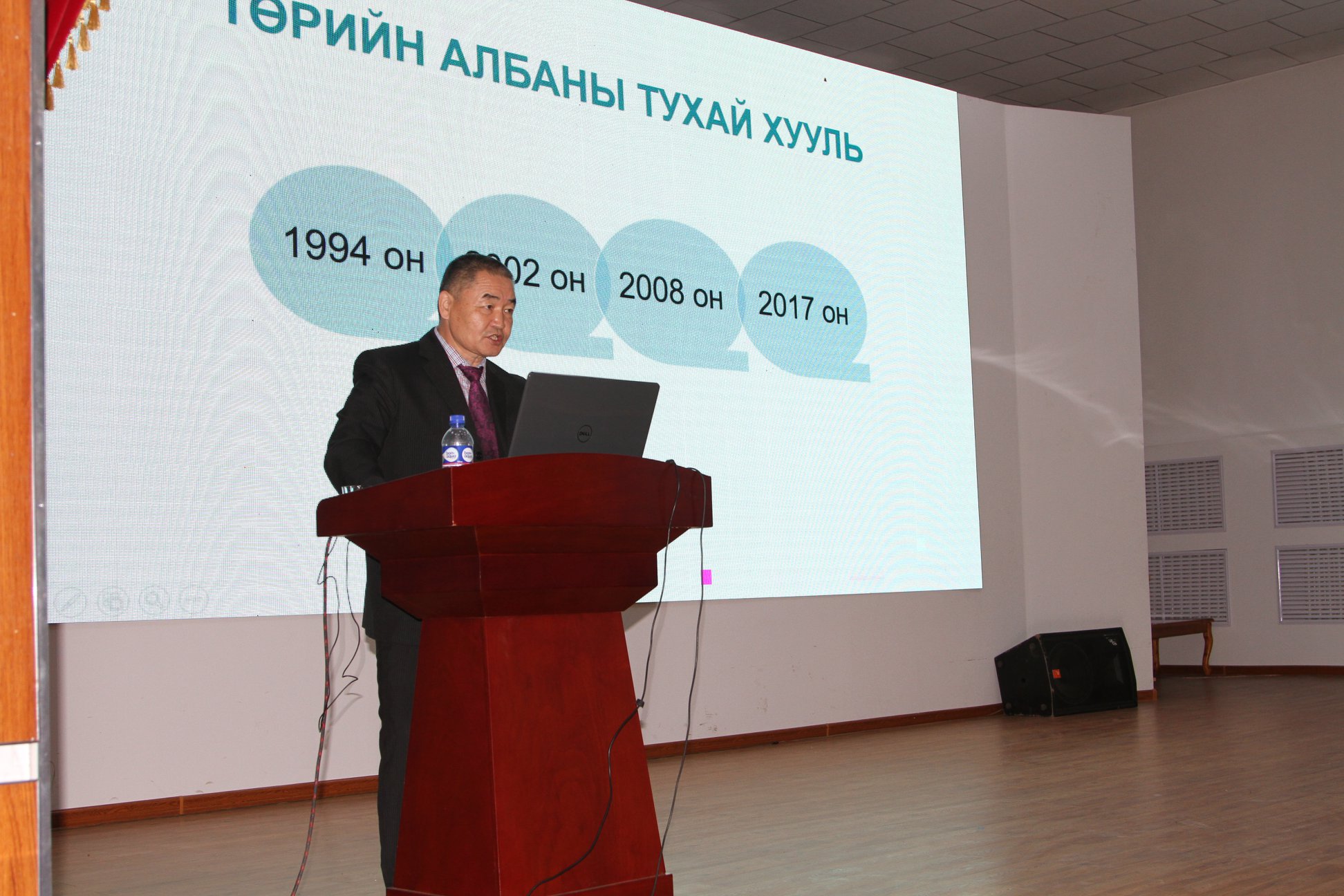 Төрийн албаны зөвлөлийн шийдвэрээр төрийн албаны шинэтгэл, төрийн албаны тухай хууль, холбогдох дүрэм, журмыг сурталчлан таниулах ажлын хүрээнд Ховд аймгийн төрийн байгууллагын албан хаагчдад 06 сарын 11-ээс зургаадугаар сар...