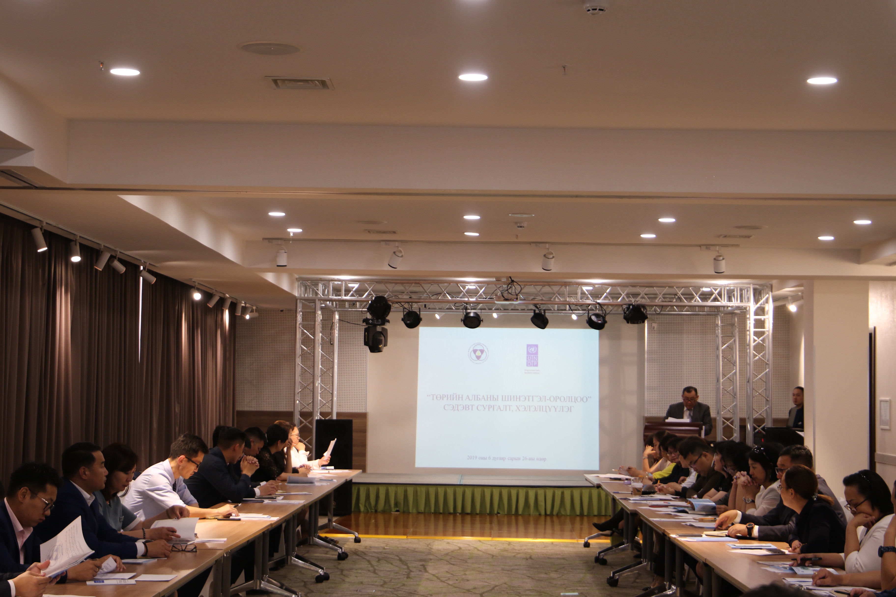 Төрийн албаны зөвлөлөөс НҮБ-ын Хөгжлийн хөтөлбөрийн хэрэгжүүлж буй “Монгол Улсад мэргэжлийн иргэн төвтэй төрийн албыг төлөвшүүлэх нь” төслийн нэгжтэй хамтран “Төрийн албаны шинэтгэл-оролцоо” сэдэвт сургалт, хэлэлцүүлгийг Төр...