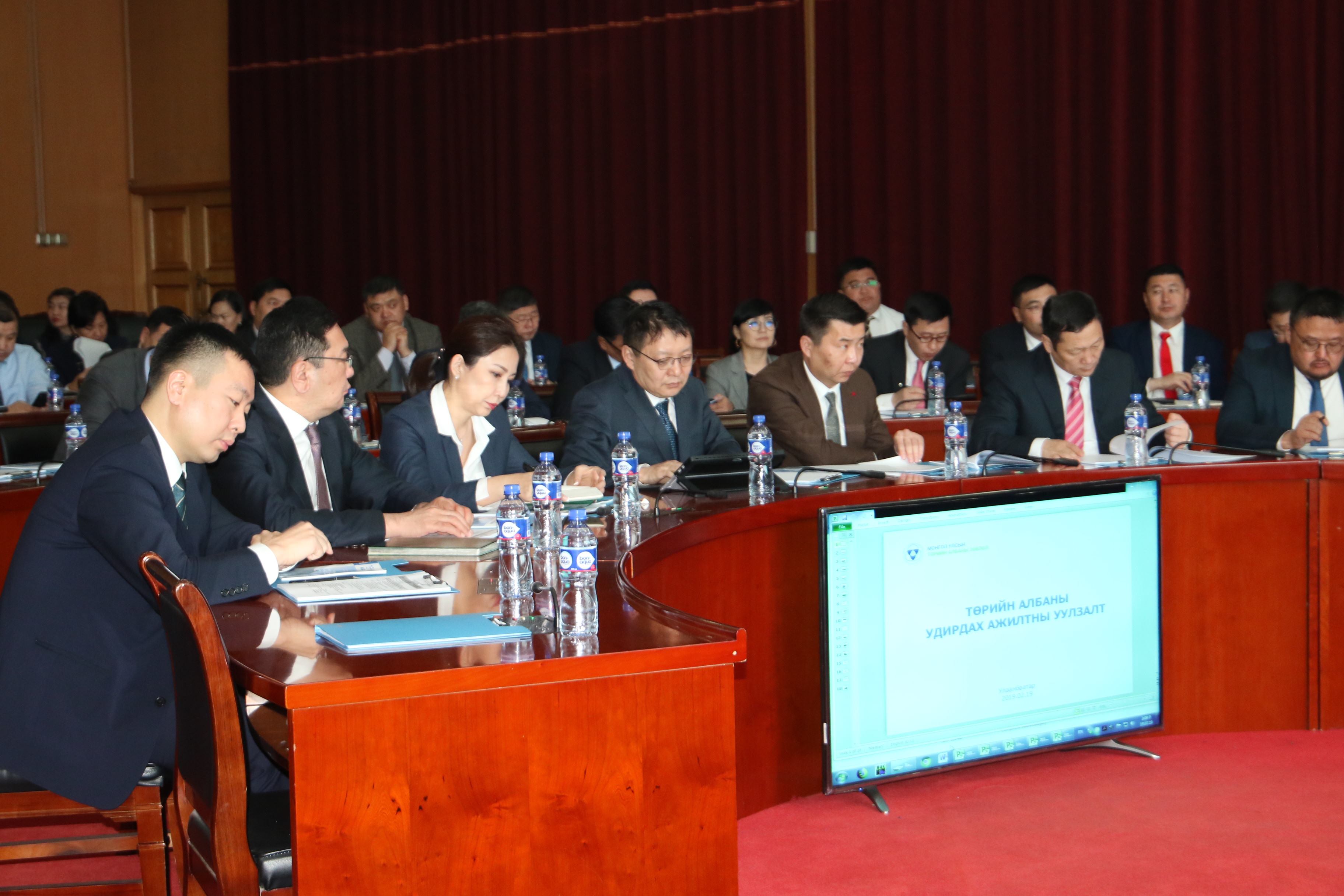 Монгол Улсын Төрийн албаны зөвлөлөөс төрийн албаны удирдах ажилтны уулзалтыг зохион байгууллаа. /2019.02.19/ Уулзалтад яамдын төрийн нарийн бичгийн дарга, агентлагуудын дарга удирдлага болон аймаг, нийслэлийн Засаг даргын Тамгын газрын даргын албан...