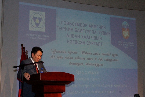 Монгол Улсын Төрийн албаны зөвлөл Говьсүмбэр аймгийн Засаг даргын Тамгын газартай хамтран тус аймагт Төрийн албан хаагчдын нэгдсэн сургалт зохион байгууллаа. Эл арга хэмжээнд Монгол Улсын Төрийн албаны зөвлөлийн гишүүн Б.Баатарзориг болон Төрийн албаны зөвлөлийн Ажлын албаны дарга, ажилтнууд оролцсон юм.