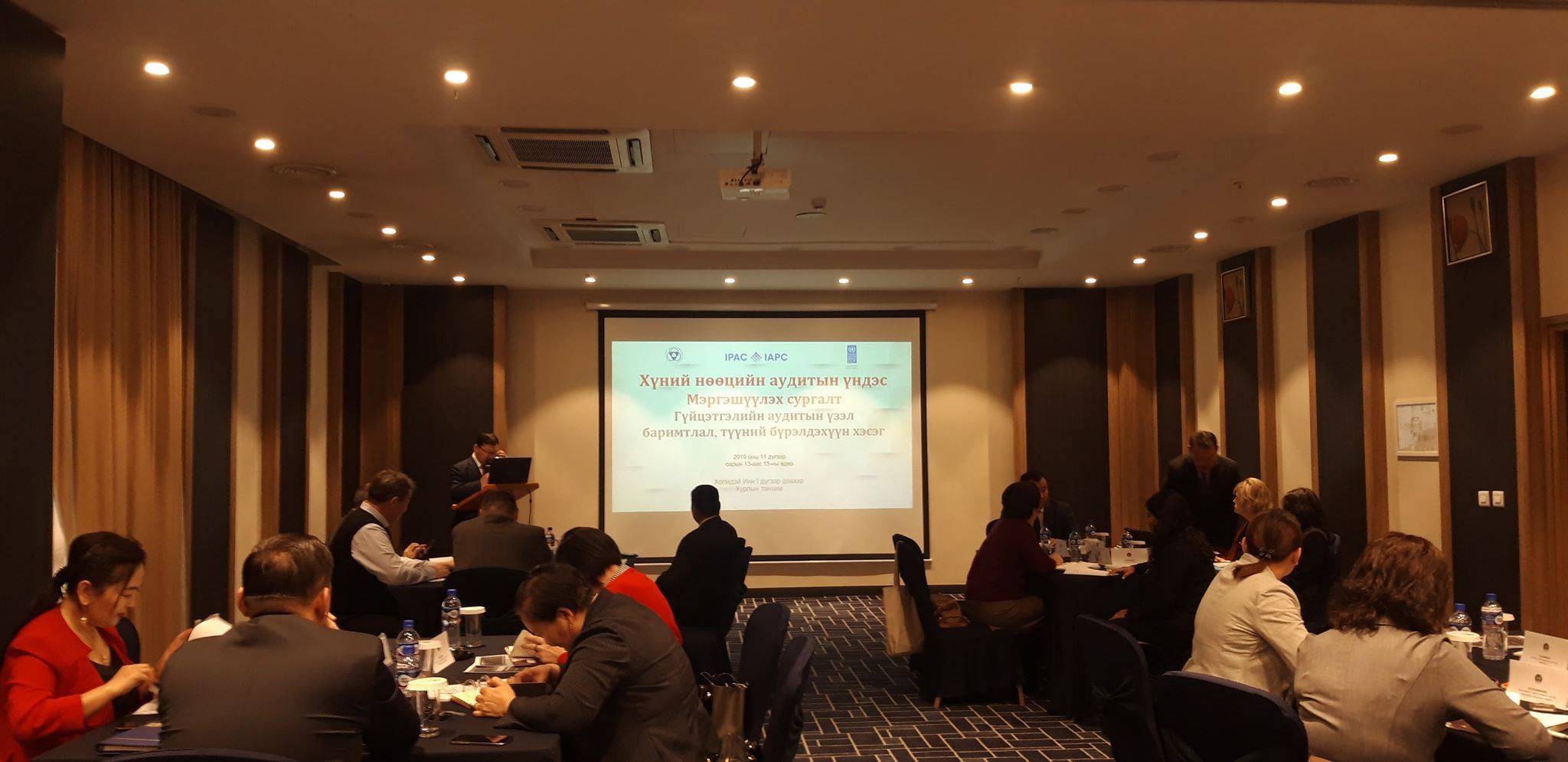 Төрийн албаны зөвлөл, НҮБ-ын Хөгжлийн хөтөлбөр хамтран хэрэгжүүлж буй “Монгол Улсад мэргэжлийн, иргэн төвтэй төрийн албыг төлөвшүүлэх нь” төсөл, IPAC –тай хамтран “Хүний нөөцийн гүйцэтгэлийн аудитын үндэс” сургалтыг 2019 оны 11 дүгээр сарын 11-нээс 13-ны өдрүүдэд зохион байгуулж байна.