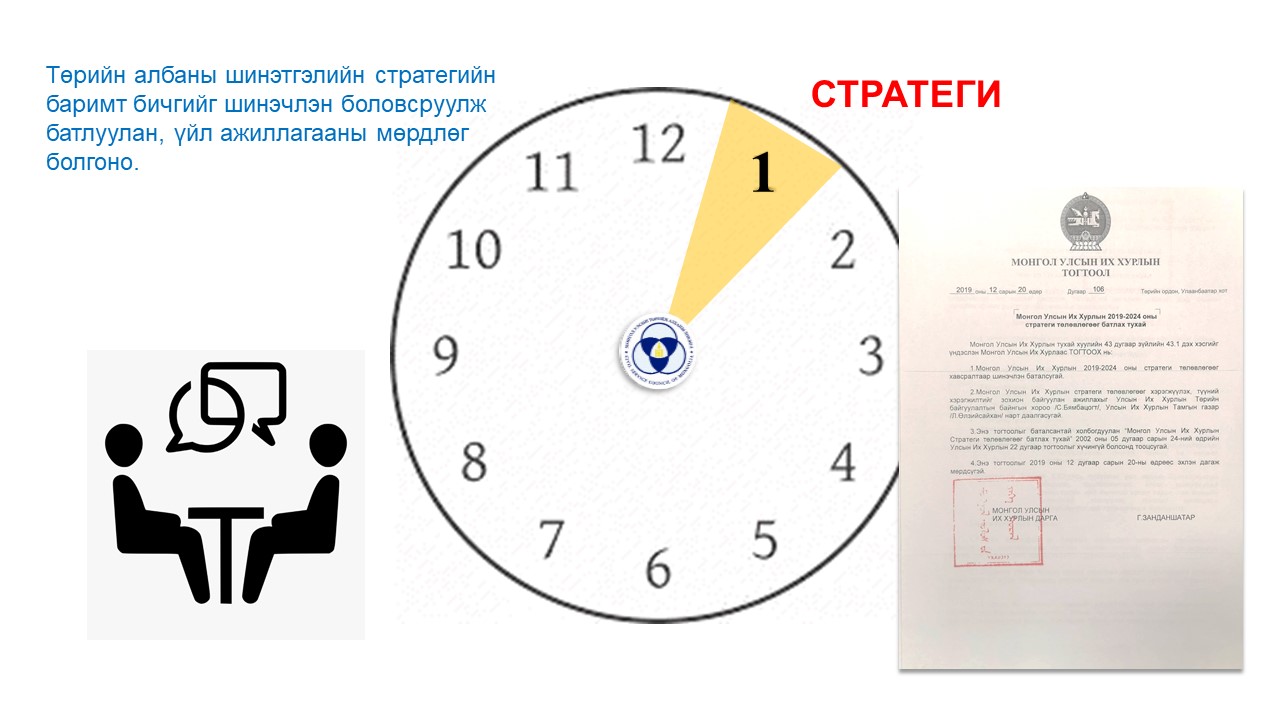 Эдгээр зорилтуудыг цаг тутам, өдөр тутам, сар тутам ажилдаа тусган авч хэрэгжүүлэн шударга ажиллаж, төрийн үйлчилгээг иргэдэд чанартай хүргэ!
