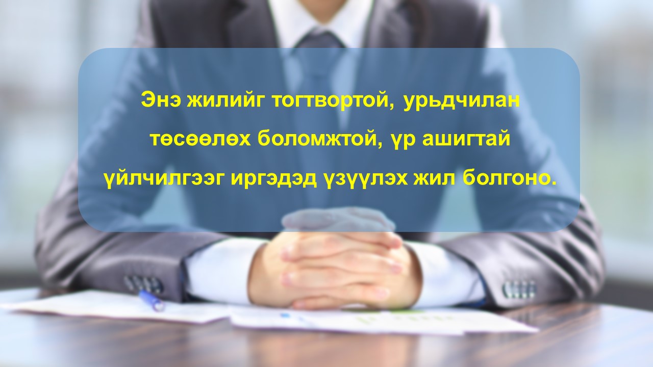 Засаглалын шинэ хэв маягийн тухай дэлхийн эрдэмтэн судлаачид олон санал дэвшүүлж байгаагийн хамгийн чухал нь меритээр дамжуулж засаглахуй, меритийн зарчмыг хамгаалах явдал байна. Манай улс меритийн зарчмыг шинэ хуулиар тов тодорхой тогтоосон. Энэ жилийг тогтвортой, урьдчилан төсөөлөх боломжтой, үр ашигтай үйлчилгээг иргэдэд үзүүлэх жил болгоно.