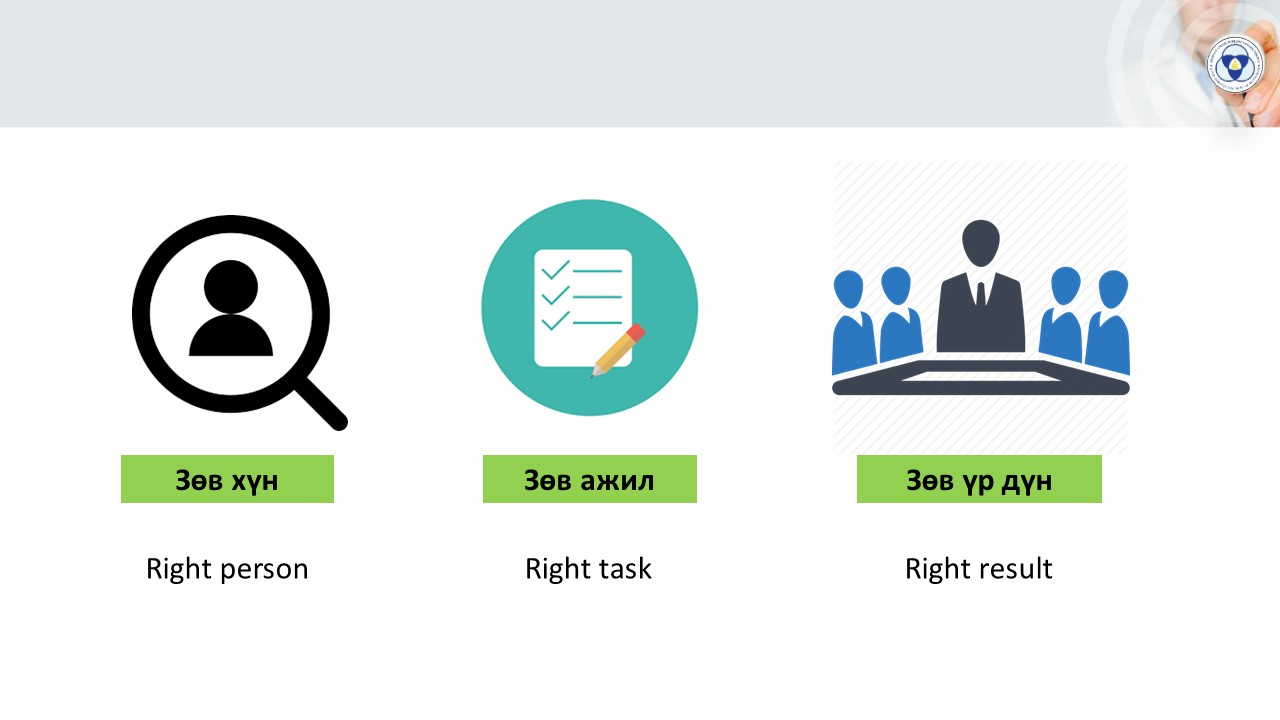 “Зөв хүнийг зөв ажилд нь томилж зөв үр дүнд хүргэх” зорилтыг дэвшүүлж бодит ажил хэрэг болгох зөв ажлын эхлэлийг тавьж байна.