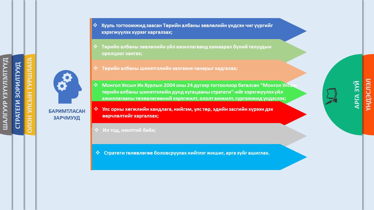 Төрийн албаны зөвлөлийн 2020 оны 02 дугаар сарын 05-ны өдрийн 09 дүгээр хуралдаанаар 2019-2023 оны стратеги төлөвлөгөөг танилцууллаа.